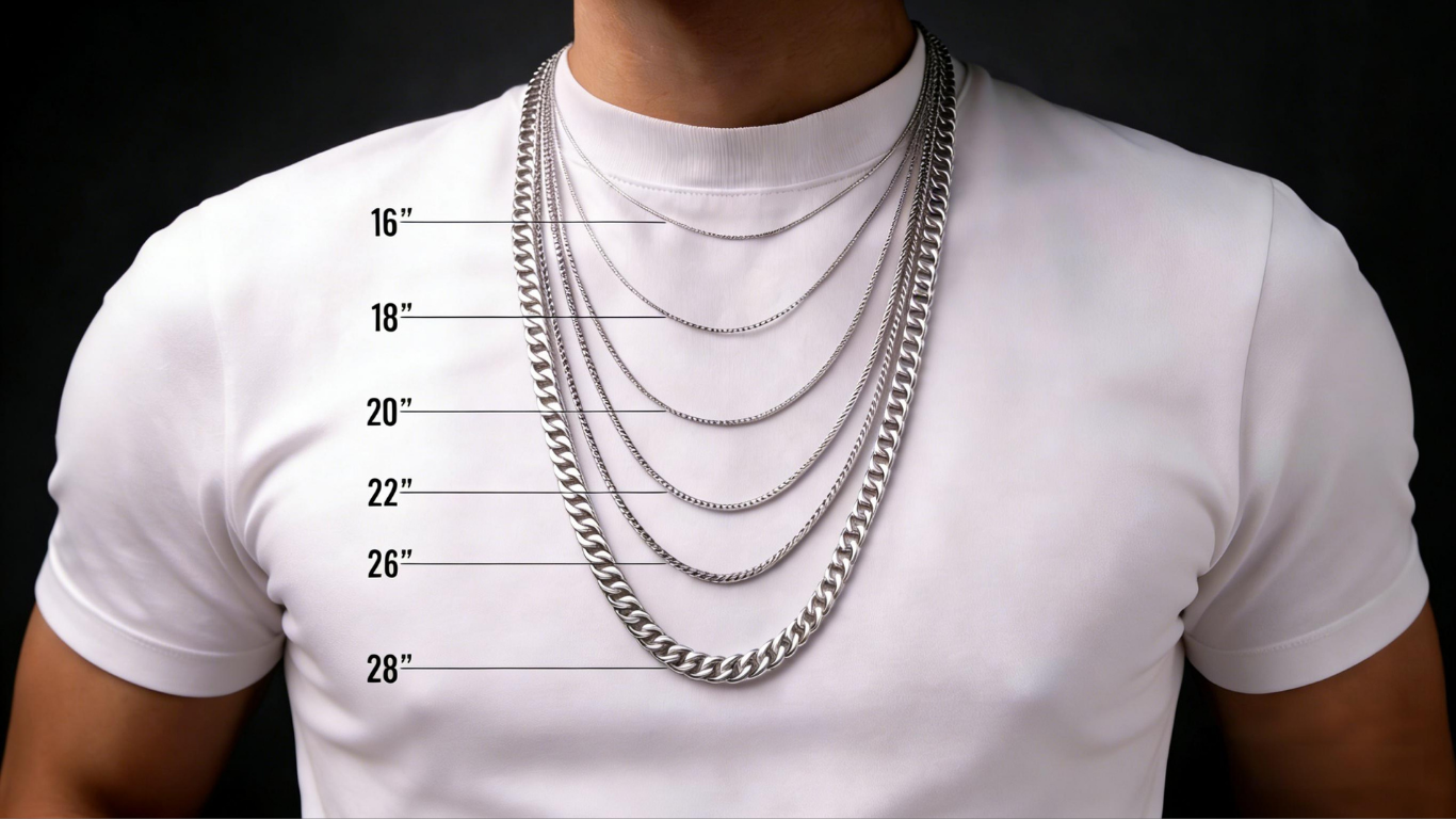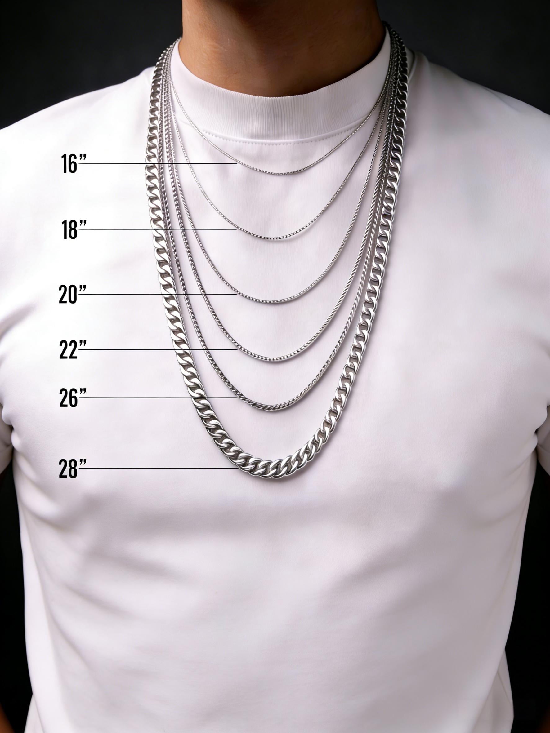 - 20" (50cm):Standard Fit.Hits right at the collarbone.